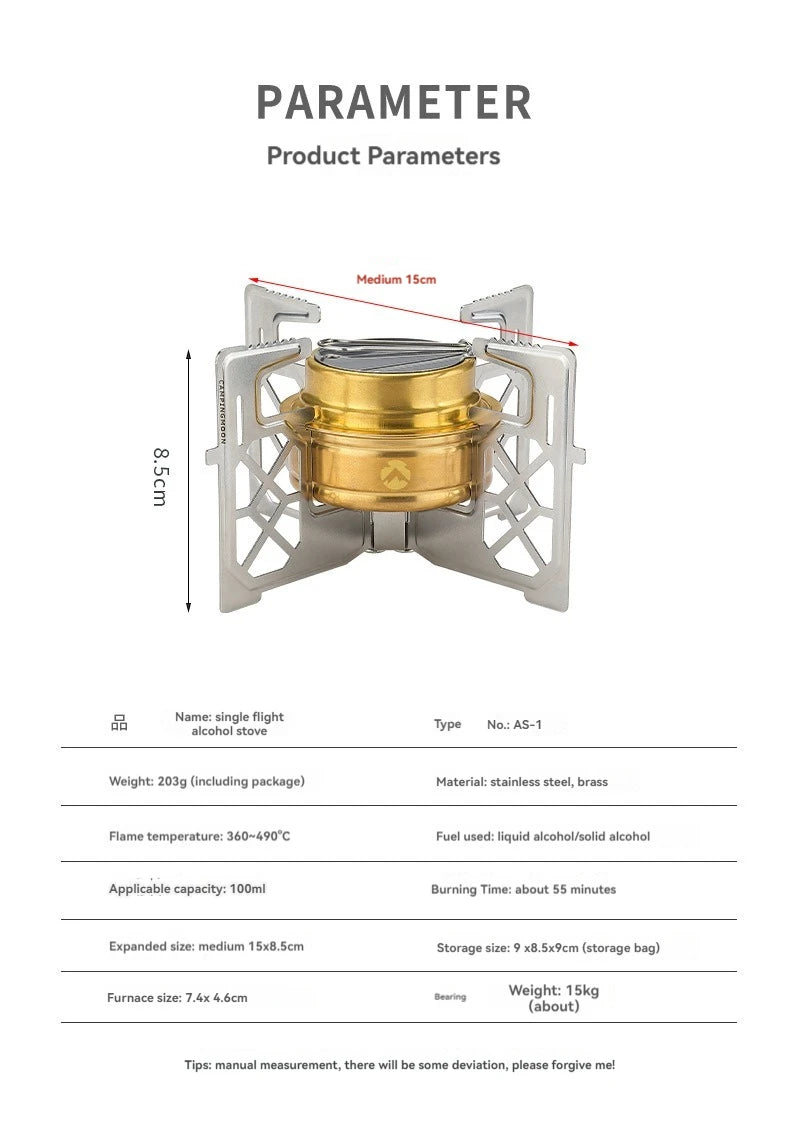 Whether you’re hiking, camping, or preparing emergency gear, the CAMPINGMOON AS-1 Alcohol Furnace ensures dependable heat, compact storage, and lasting performance — anywhere your adventure leads.