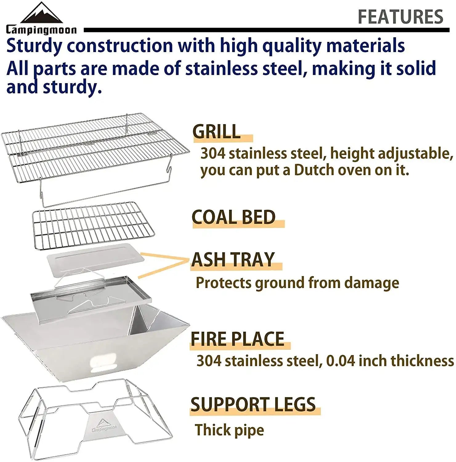Take your outdoor cooking anywhere with the CAMPINGMOON MT-3 Folding Charcoal Grill — the perfect companion for camping, picnics, and backyard BBQs. Built for adventurers who value performance and portability, this stainless-steel grill offers reliable heat control and effortless setup every time.